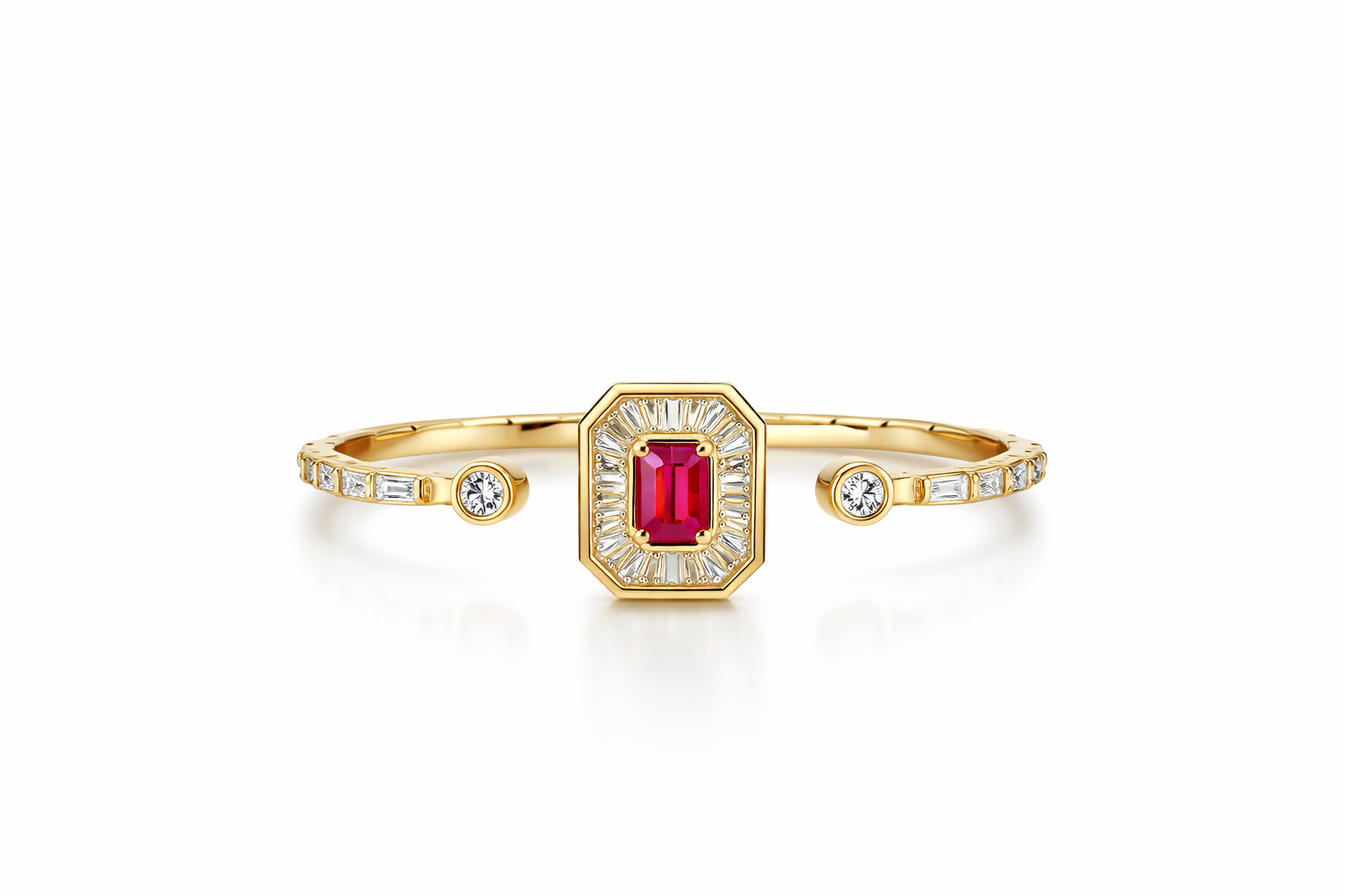 Anillo de doble dedo oro amarillo 14k, 1.06ct diamante natural con 0.35ct de rubí.