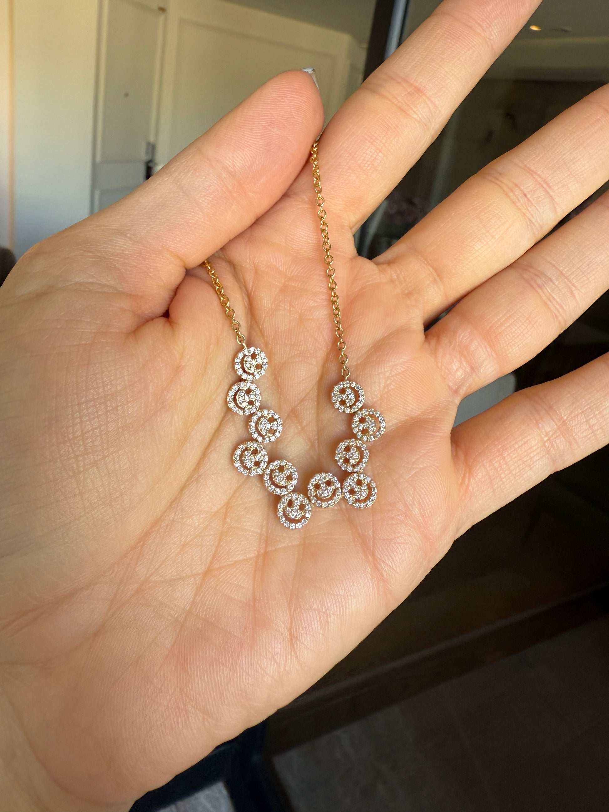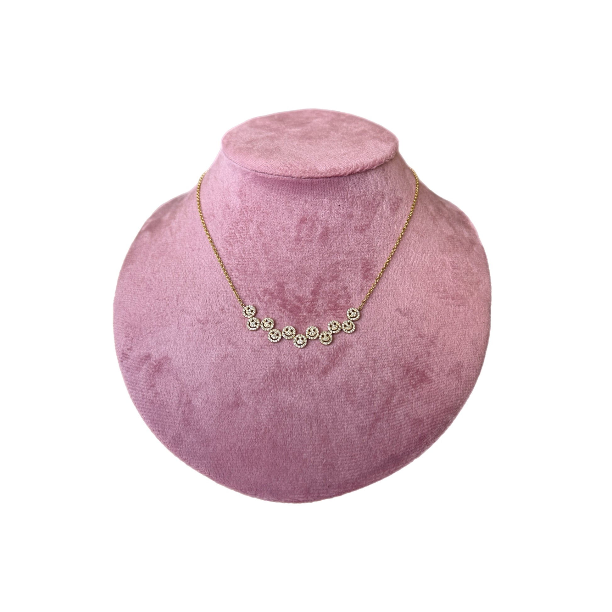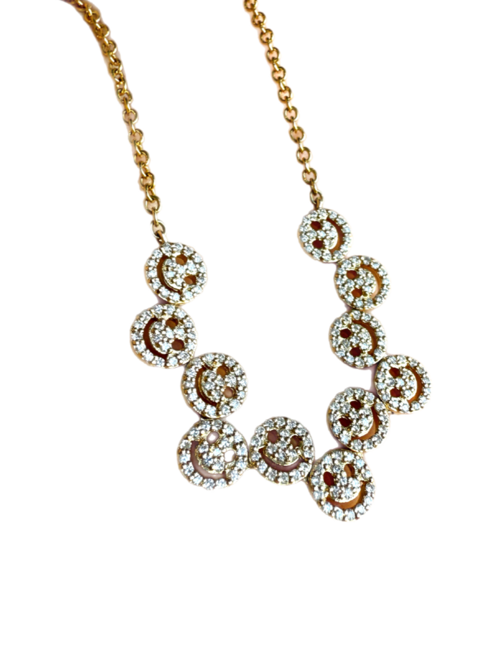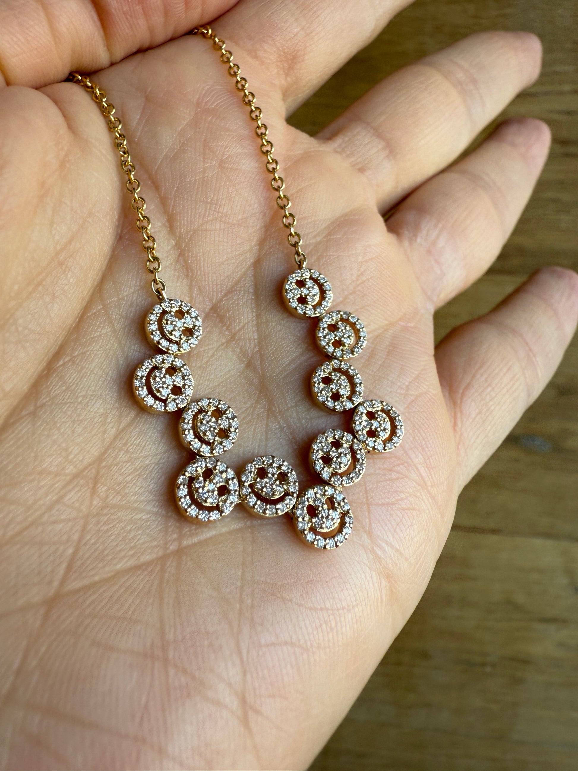 Cadena sólida en oro 14k ajustable a 16, 17 y 18 inches de caritas felices con 0.62 ct de Diamante Natural. Divina con un brillo único.
