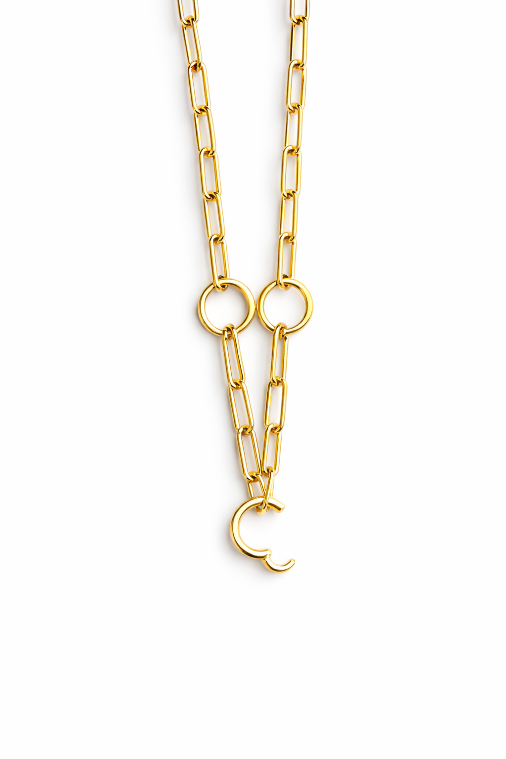 Cadena de oro 14k hollow con 3 clasps/aros que se abren para colgar dijes.