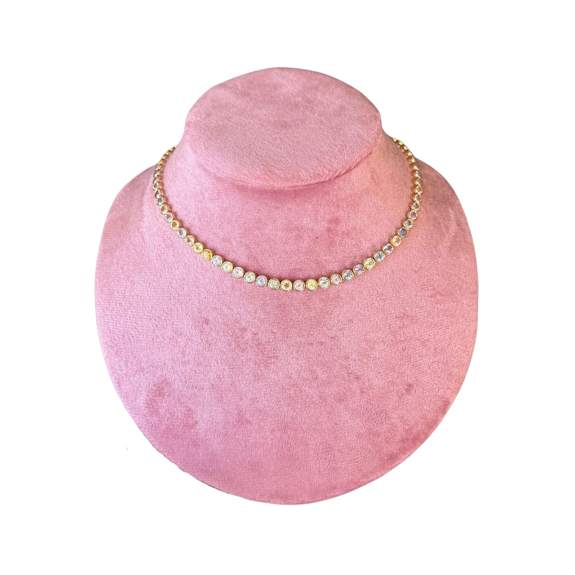 Collar elaborado de 27.54ct de Záfiros naturales tonos pasteles. Impresionante para un evento super elegante o lucir en un día especial. Todo en oro 14k.