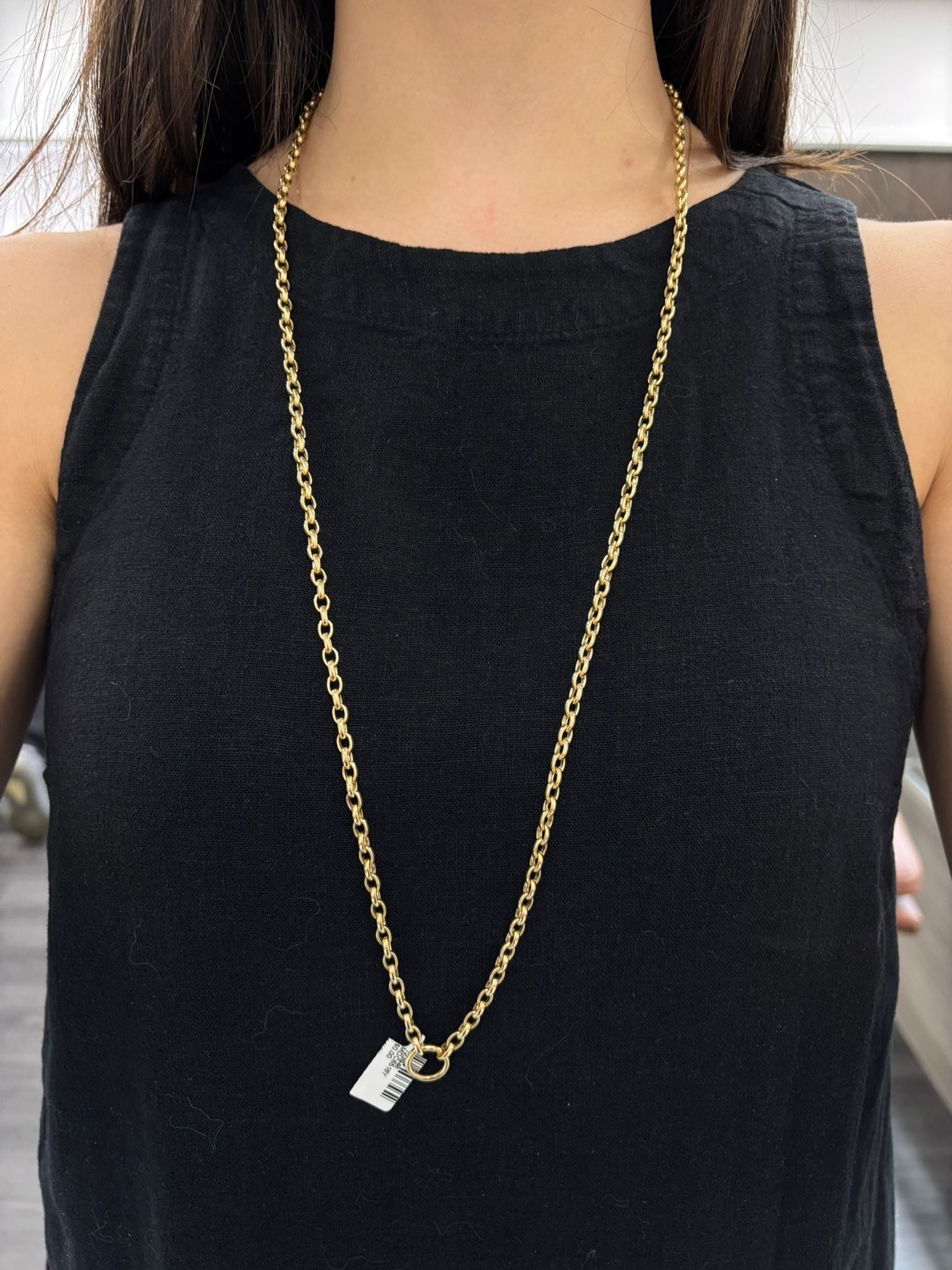 Cadena de oro 14k tipo rollo, larga de 33 inches, semi-hollow. Ideal si quieres un look chunky y largo para tus collares y hacer esos layering top.