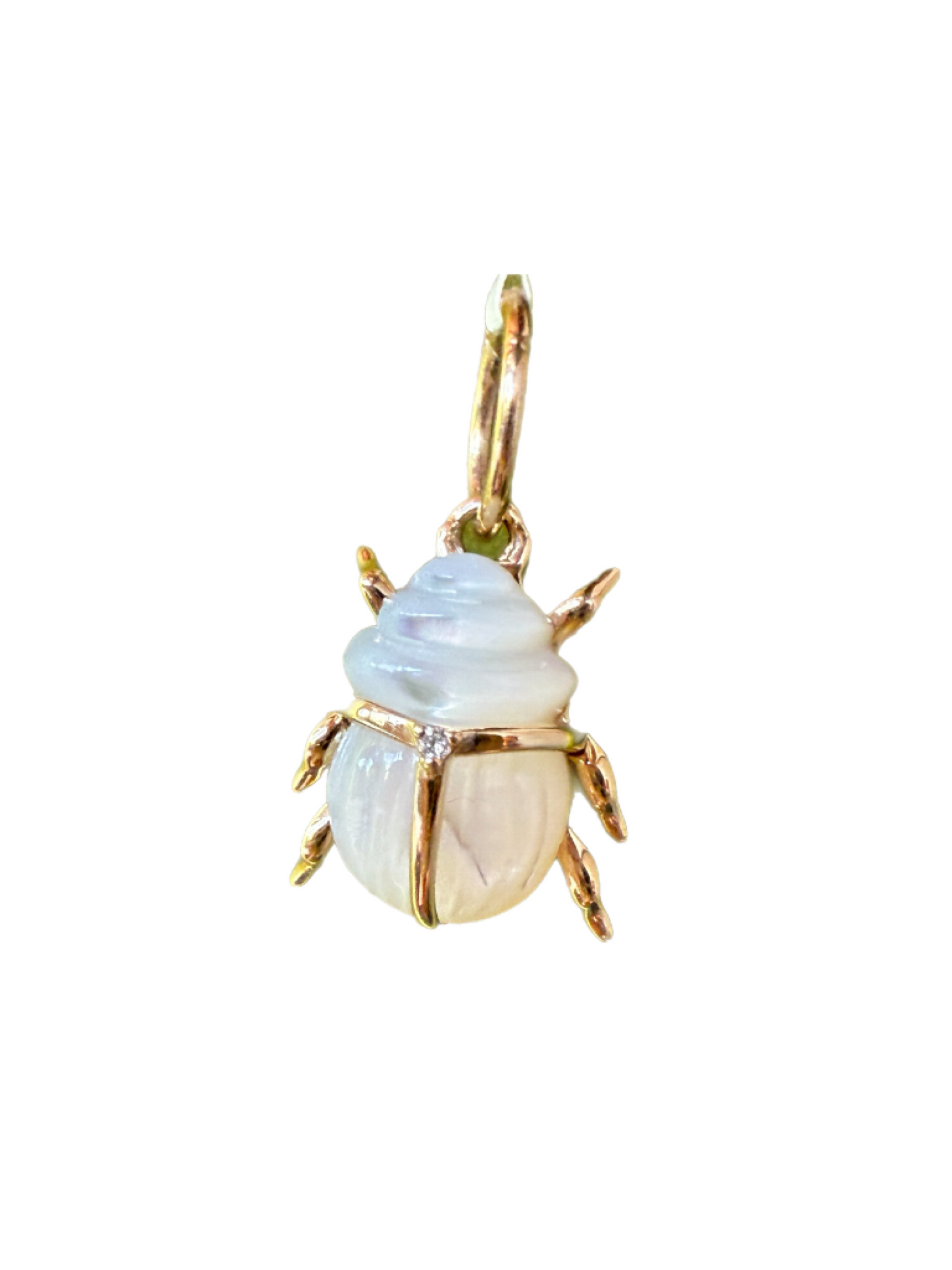 Dije de escarabajo de 1.64 ct de Madre Perla, diamante natural y oro 14k.