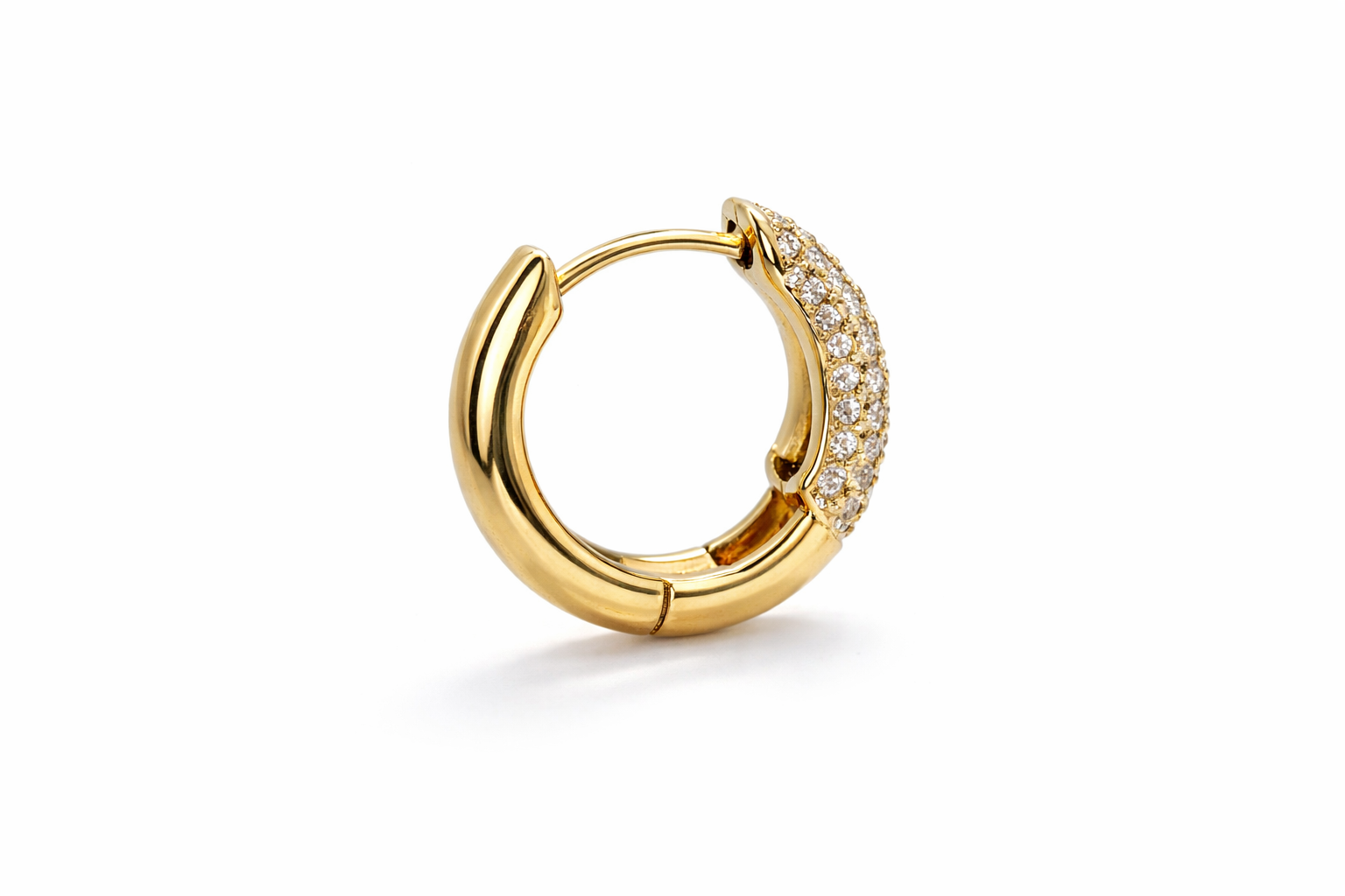 Aretes tipo Huggies, oro 14k estilo pavé con 0.36ct de diamantes naturales que abrazan la oreja.