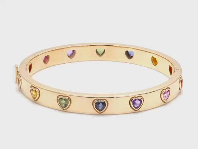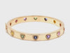 Pulsera dura en oro 14k con 4.28 ct de zafiros de colores en forma de corazones. 19.45 g oro 14k